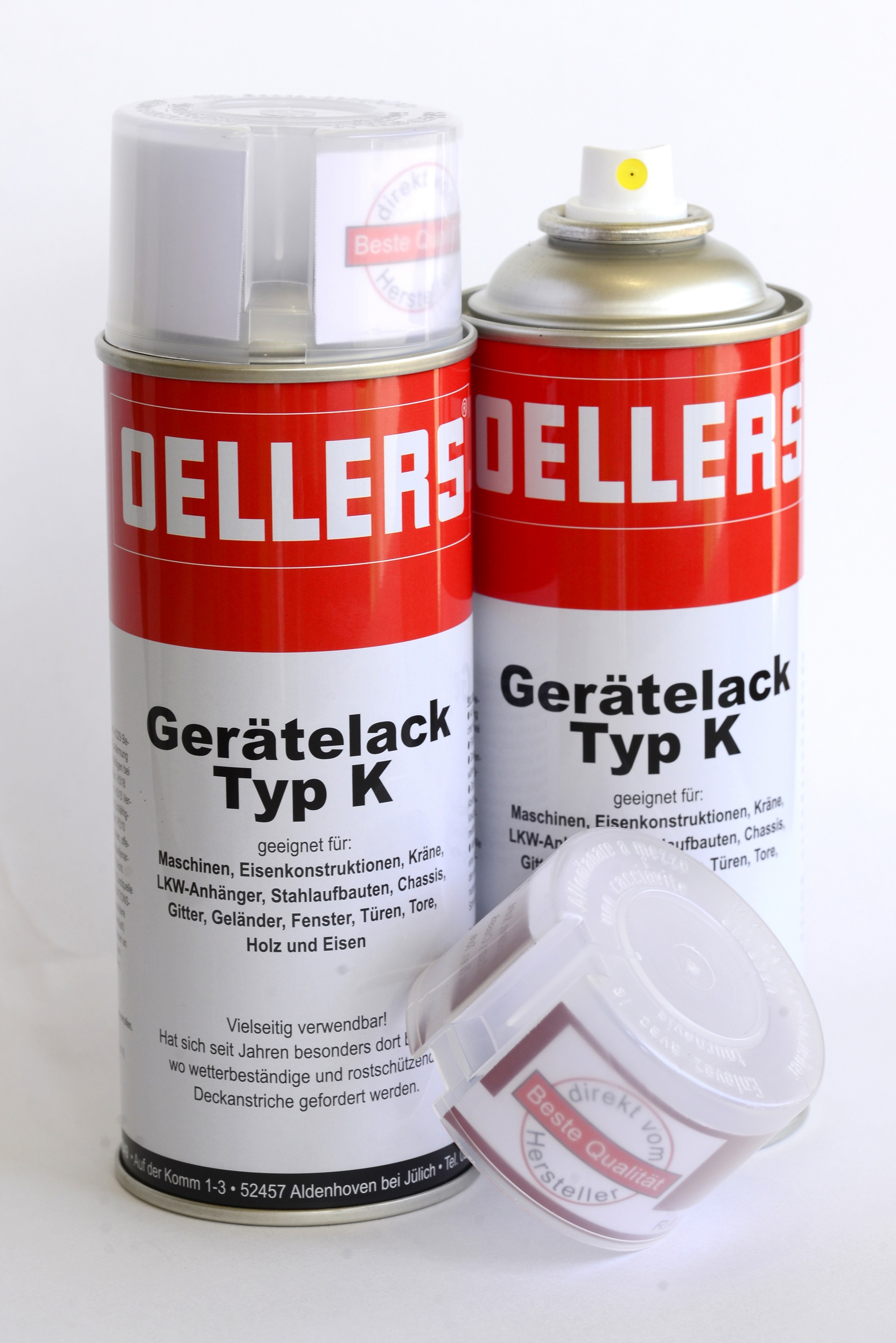 OELLERS Spraylack, ist ein Sprühlack für die universelle Anwendung auf Metall und Holz geeignet. Auf LKW-Anhängern, Stahlkonstruktionen oder Holztüren sorgt der Kunstharzlack für eine hochglänzende und elastische Deckbeschichtung. Diese ist nach Durchtrocknung kratzfest sowie wetterbeständig. Mit OELLERS Gerätelack Typ-K Spraylack können Sie Stellen nacharbeiten, Farbtöne angleichen und Schadstellen ausbessern.